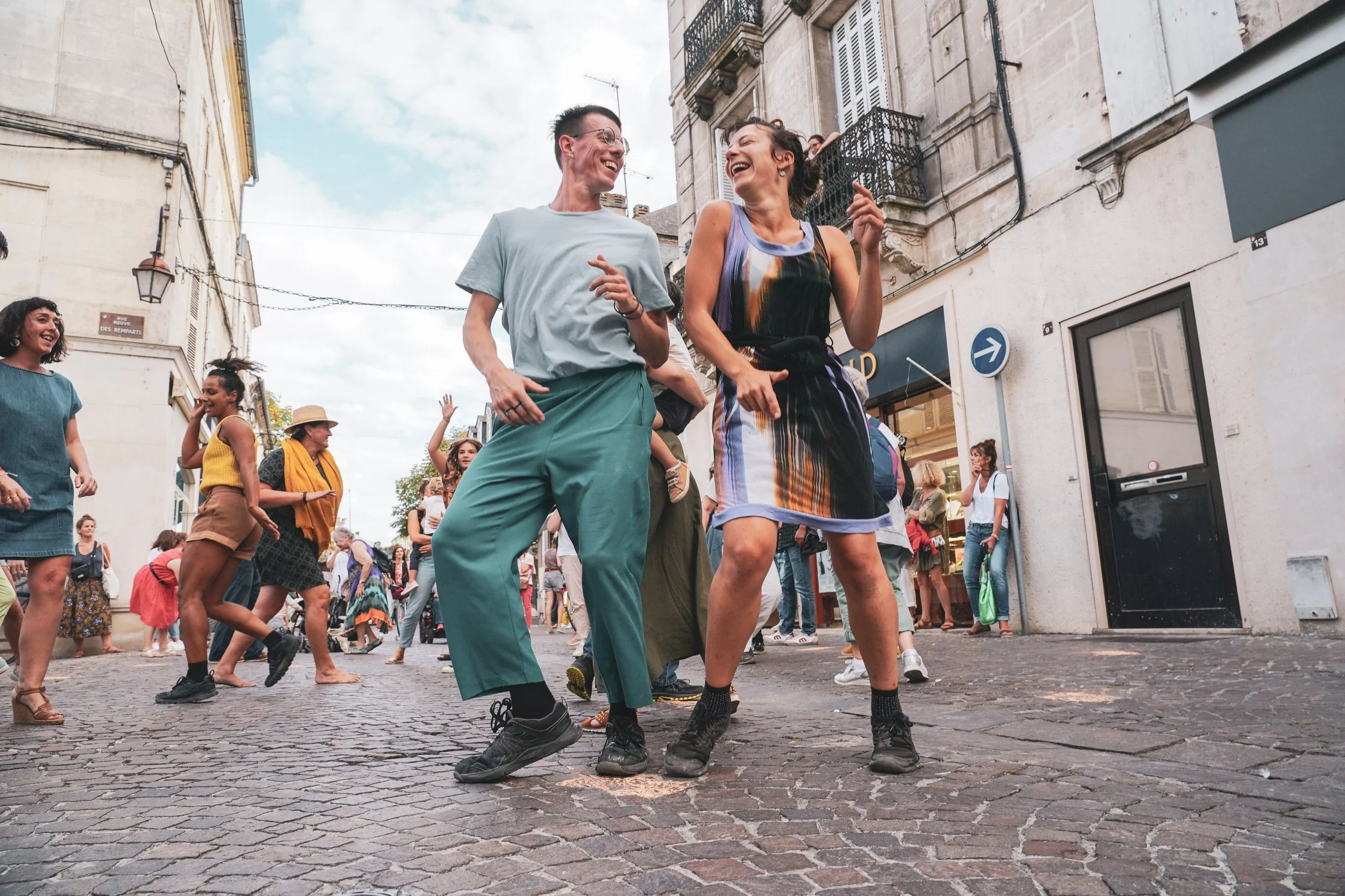 Un déhanché inopiné, une tête qui dodeline ou un sourire naissant et le collectif ussé inné fait de vous les complices d’une expérience de danse impromptue, libre et collective. Là, maintenant, dans la rue, avec des inconnu·e·s, rejoignez cet espace utopique et éphémère où l’on fait fi du qu’en-dira-t-on et où les seules intentions sont plaisir, lâcher-prise et communion !